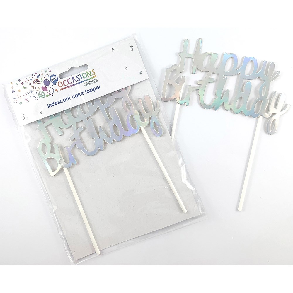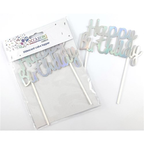 Alpen Happy Birthday Cake Topper 135mm H x 100mm W Metallic Iridescent