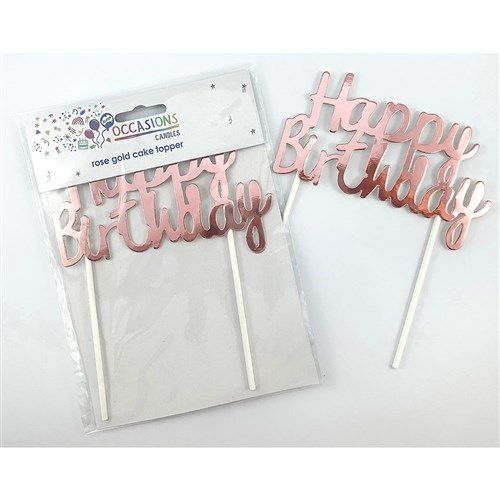 Alpen Happy Birthday Cake Topper 135mm H x 100mm W Metallic Rose Gold