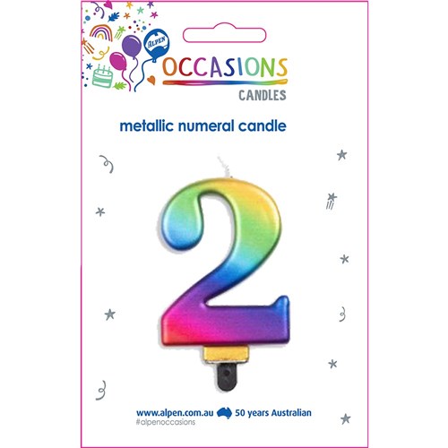 Alpen Numerical Birthday Candle No. 2 Metallic Rainbow