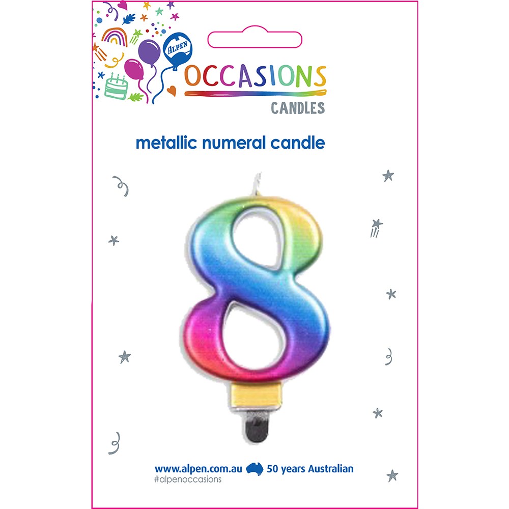 Alpen Numerical Birthday Candle No. 8 Metallic Rainbow