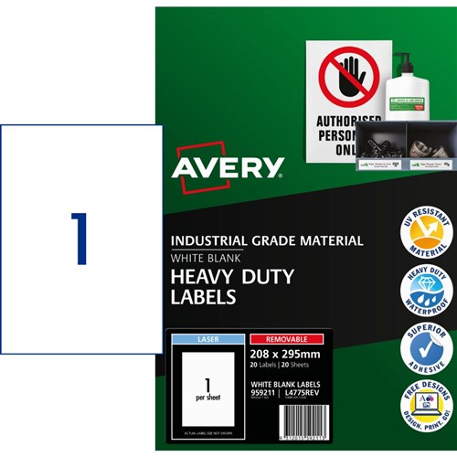 Avery 959211 Heavy Duty Industrial Labels White L4775