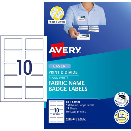 AVERY L7427 BADGE LABEL Fabric Name Badge 10up 88x52mm Pack of 15