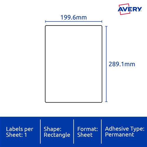AVERY HEAVY DUTY LASER LABELS L7067 1UP 199.6x289.1mm PK25