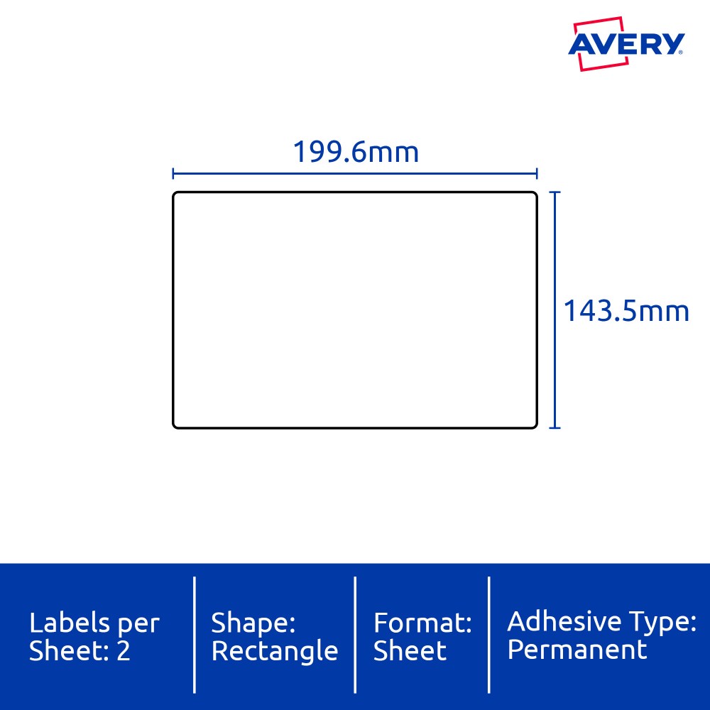 • Size: 199.6x143.5mm 50 labels, 25 sheets. 2 labels per sheet (2UP).