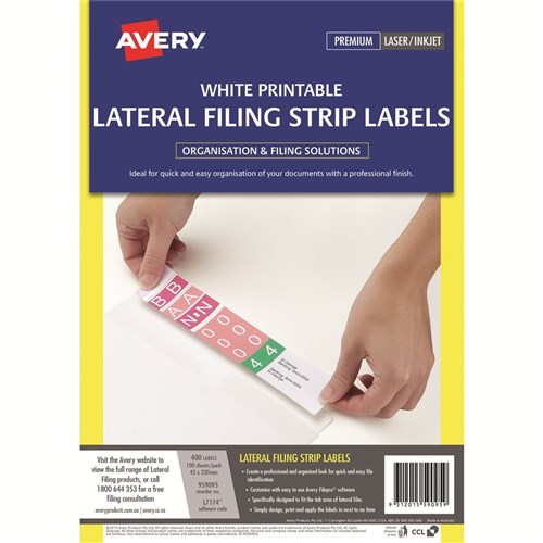 AVERY LATERAL FILING LABELS L7174 PK400 4UP