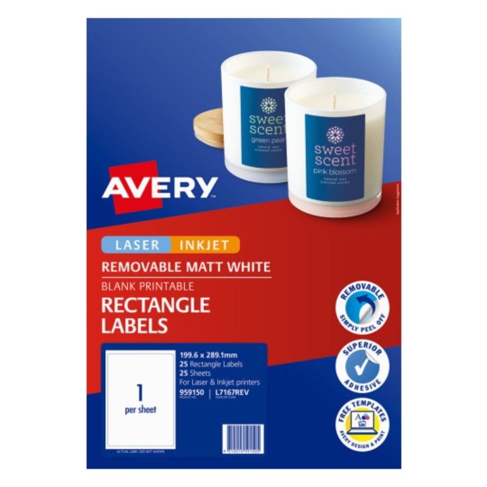 Avery Removable Labels L7167REV 199.6x289.1mm Rectangle White 1UP 25 Labels
