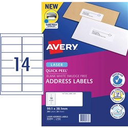 AVERY SURE FEED LABELS Laser 99.1 x 38.1mm White Pack of 140