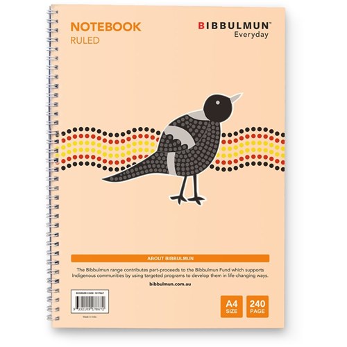 BIBBULMUN SPIRAL NOTEBOOK 7MM A4 240 Pages Side Bound Ruled
