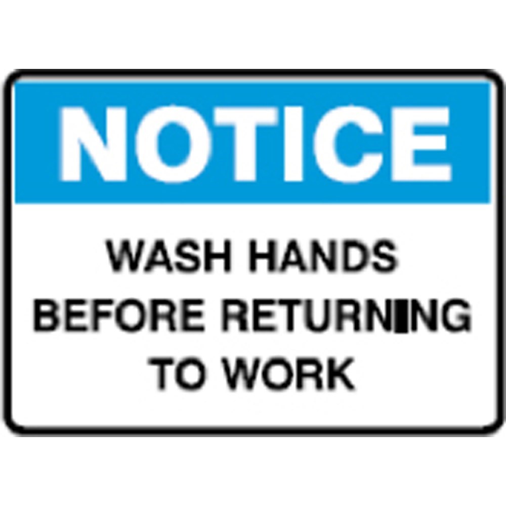 • Wording: Notice Sign Wash Hands Before Returning To Work.