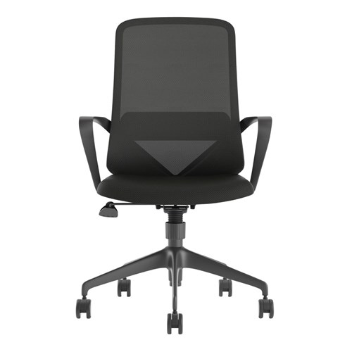 • Composition: Mesh back with lumbar support, upholstered seat and strong nylon 5 star base with 60mm nylon castors. Fixed looped armrests.