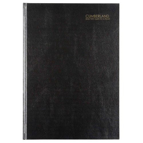 CUMBERLAND CLASSIC DIARY 2 Days To Page Casebound A4 Black - 2021