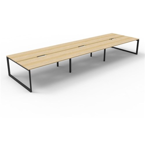 Deluxe Loop Workstation 6 Person No Screen 1200Wx750D Oak Top Black Double Frame