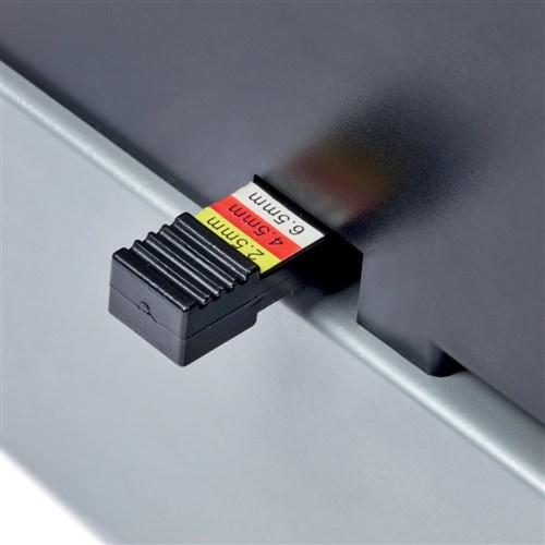 • A reliable manual binding machine to streamline your everyday tasks in the office, home, and school. with adjustable selector pins it enables effortless adaptation to paper up to a4, with the flexibility to customise margin depths.