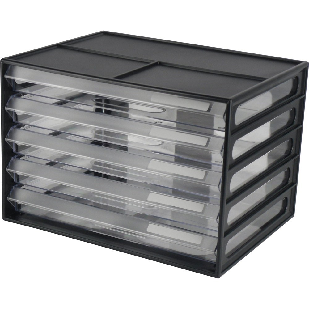 ITALPLAST A4 DOCUMENT CABNET 5 Drawer Black/Clear I326BLK **LANDSCAPE**
