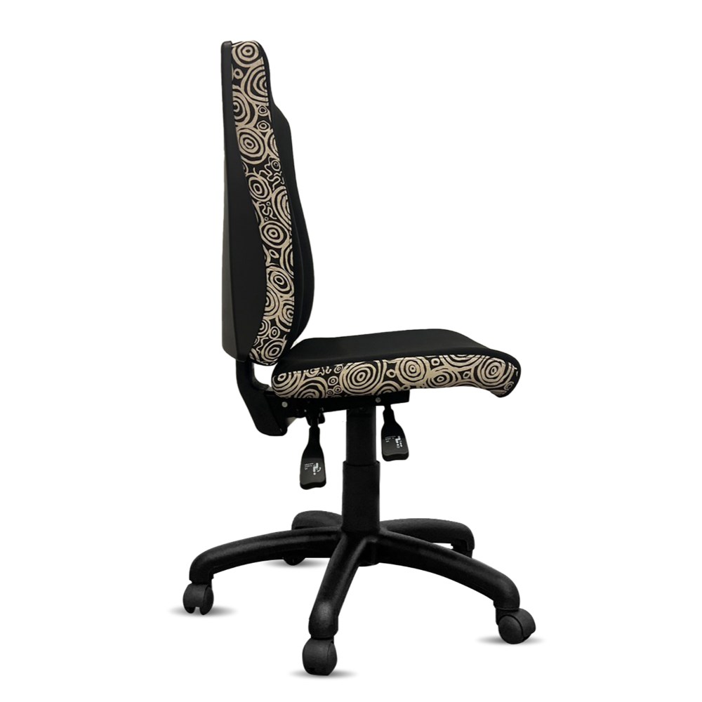 • A unique commercial fabrics designed by Nelly Patterson (Indigenous Artist) combined with K2 Black Fabric to upholster the chair.
