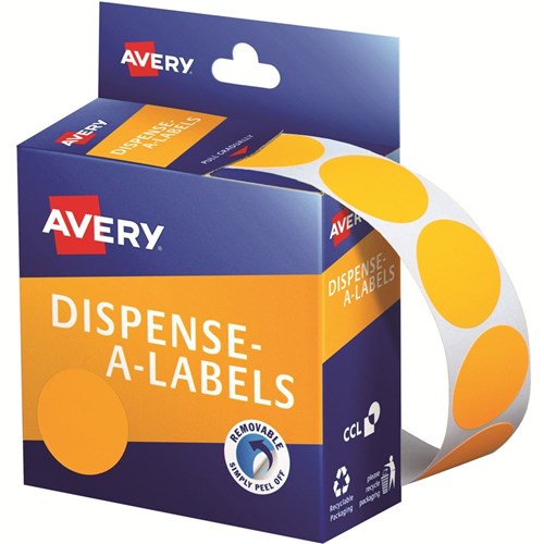 LABEL DOTS AVERY DMC24 24MM FLURO ORANGE PK350