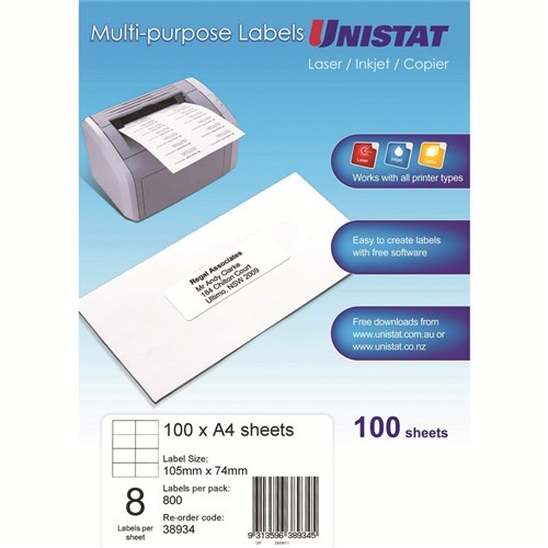• Size: 105x74mm 800 labels, 100 sheets, 8 labels per sheet (8UP).