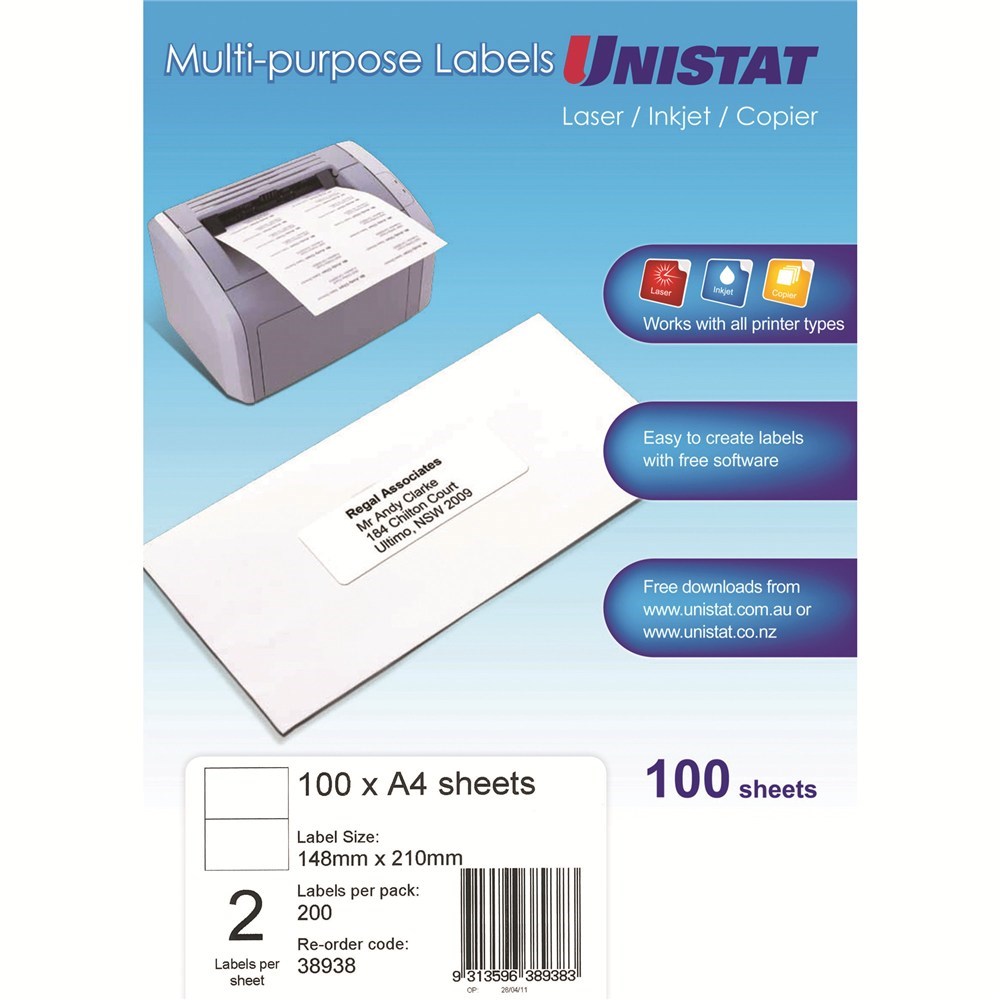 LABELS 148x210 UNISTAT 2/A4/100 CODE: 38938