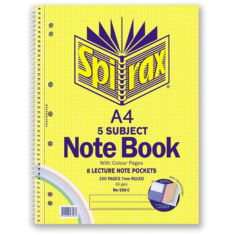 • 5 subject A4 book with coloured pages per subject.