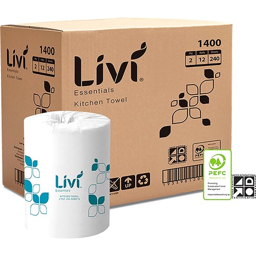 Livi Essentials Kitchen Towel Roll 2 Ply 240 Sheets Box of 12