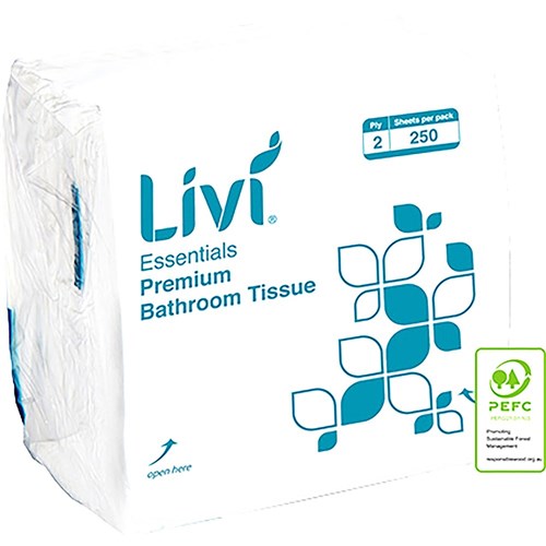 Livi Essentials Toilet Paper Interleaved 2 ply 250 Sheets Box of 36