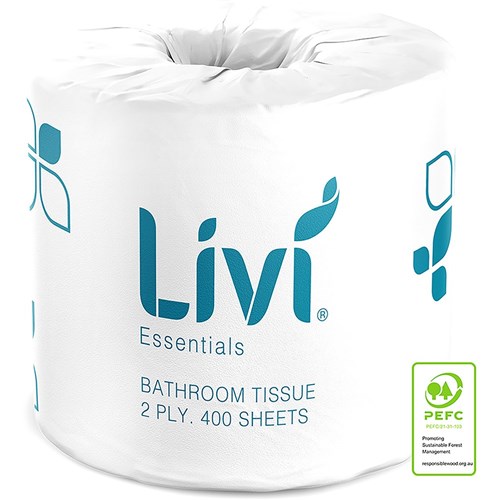 Livi Essentials Toilet Paper Rolls 2 ply 400 Sheets Box of 48