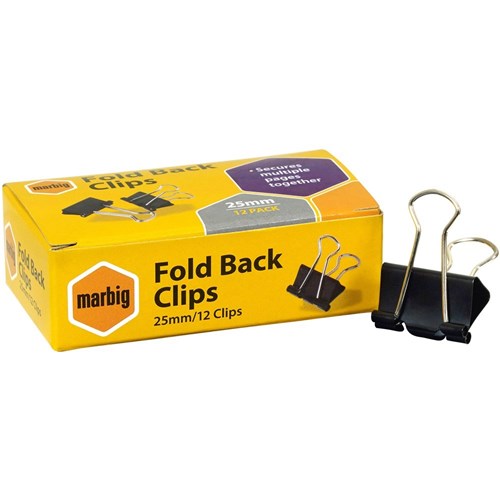 MARBIG FOLDBACK CLIPS 25mm BOX.12