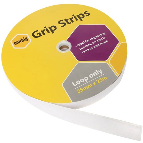 MARBIG GRIP FASTENERS LOOP ONLY 25MM X 25M STRIP ROLL VELCRO