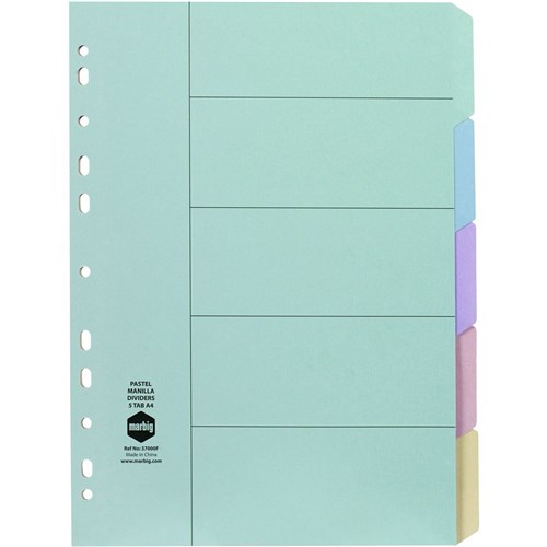 MARBIG MANILLA DIVIDERS 5 TAB A4 MULTI COLOURED PASTEL