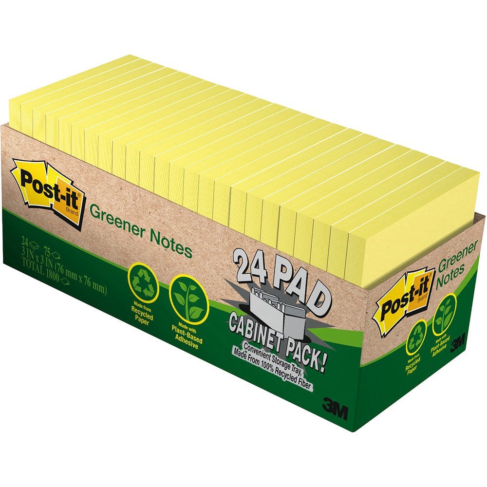 POST-IT 654R-24CP-CY NOTES Cab Pack 100% Rcycld 76x76 Yel PK24