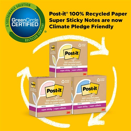 Post-It 654R-5SSCY Super Sticky Notes Recycled 76mm x 76mm Yellow Pack Of 5