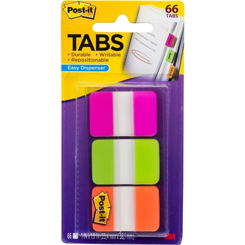 POST IT DURABLE INDEX TABS 686-PGO 25x38.1MM 22 TABS PINK GREEN ORANGE PKT