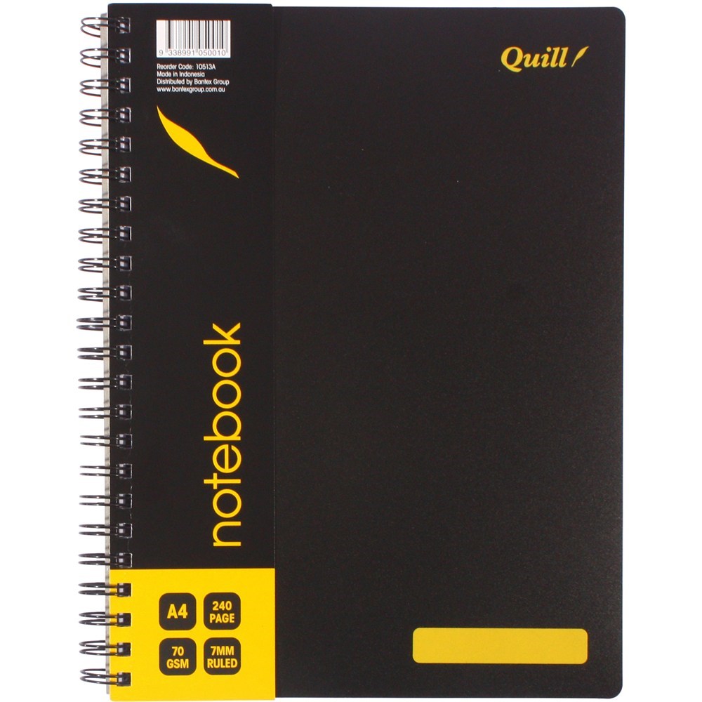 Quill Notebook 70GSM PP A4 Black 240 Pages