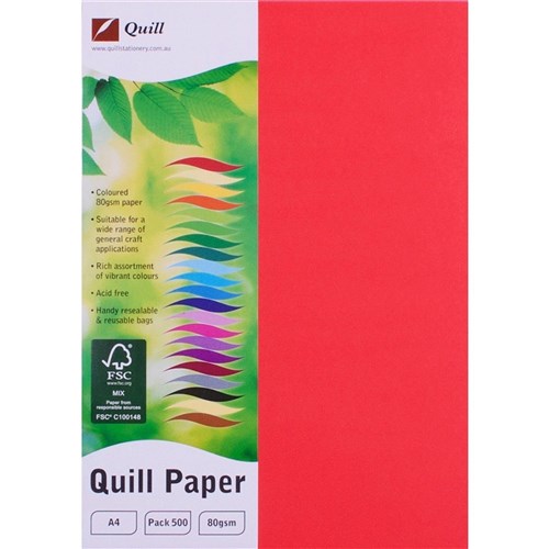 QUILL XL MULTIOFFICE PAPER A4 80gsm Red REAM 500
