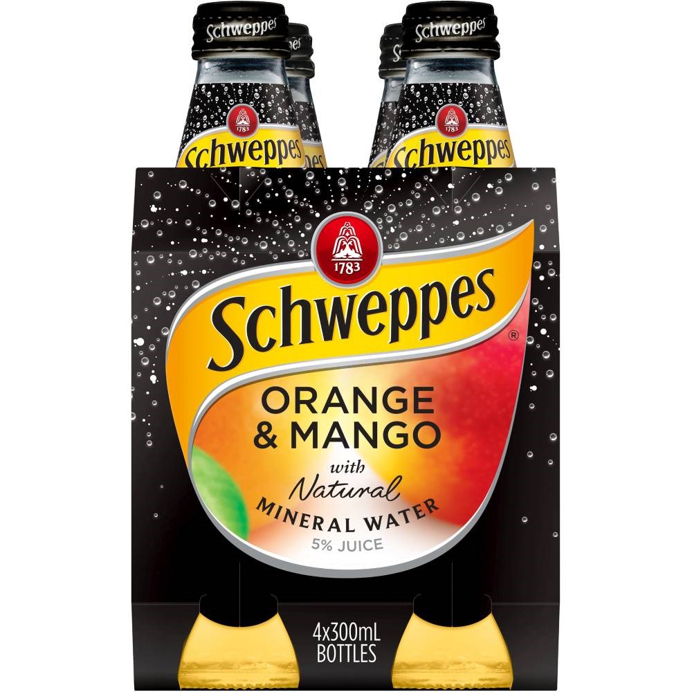 • Blended with mineral water sourced from some of Australia?s finest springs, Schweppes Orange & Mango Mineral Water offers pure, fruity hydration.