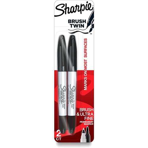 Sharpie Permanent Marker Dual Ended Tips Twin Brush Black Pack of 2