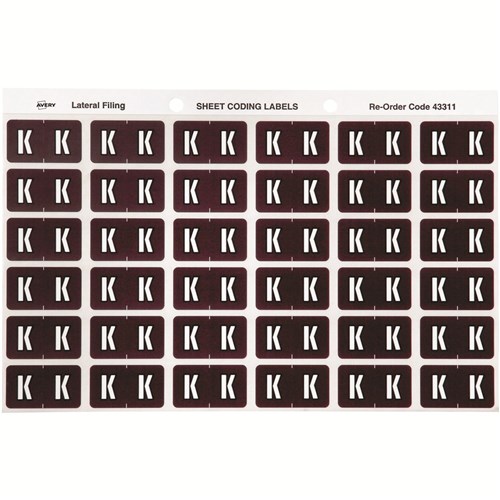 SHEET CODE LABEL ALPHA K LATERAL SIDE TAB 30 LABELS/SHT 180 LABELS PK5