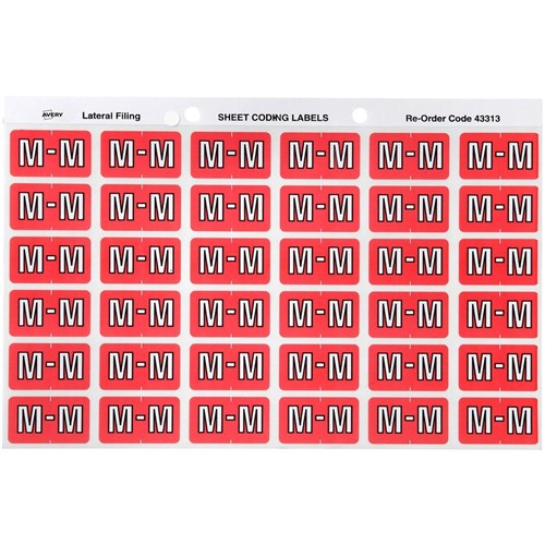 SHEET CODE LABEL ALPHA M LATERAL SIDE TAB 30 LABELS/SHT 180 LABELS PK5