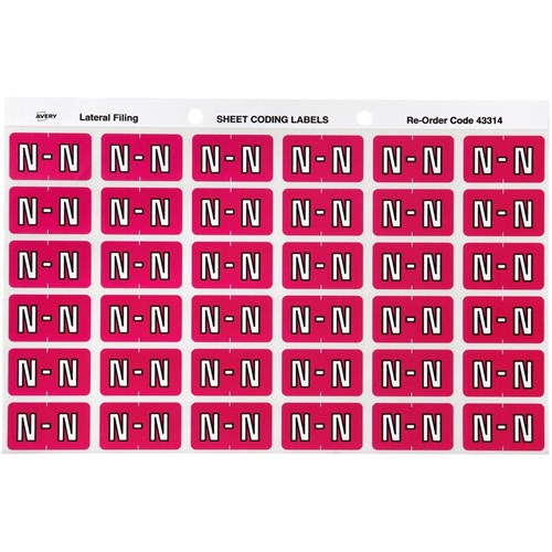 SHEET CODE LABEL ALPHA N LATERAL SIDE TAB 30 LABELS/SHT 180 LABELS PK5