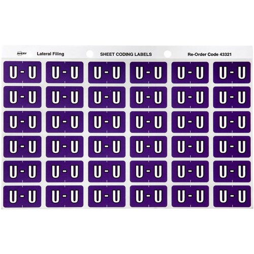 SHEET CODE LABEL ALPHA U LATERAL SIDE TAB 30 LABELS/SHT 180 LABELS PK5