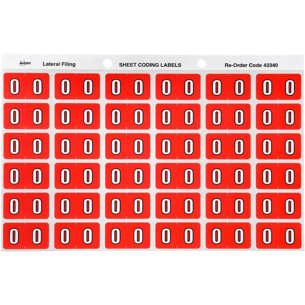 SHEET CODE LABEL NUMERIC 0 LATERAL SIDE TAB 30 LABELS/SHT 180 LABELS PK5