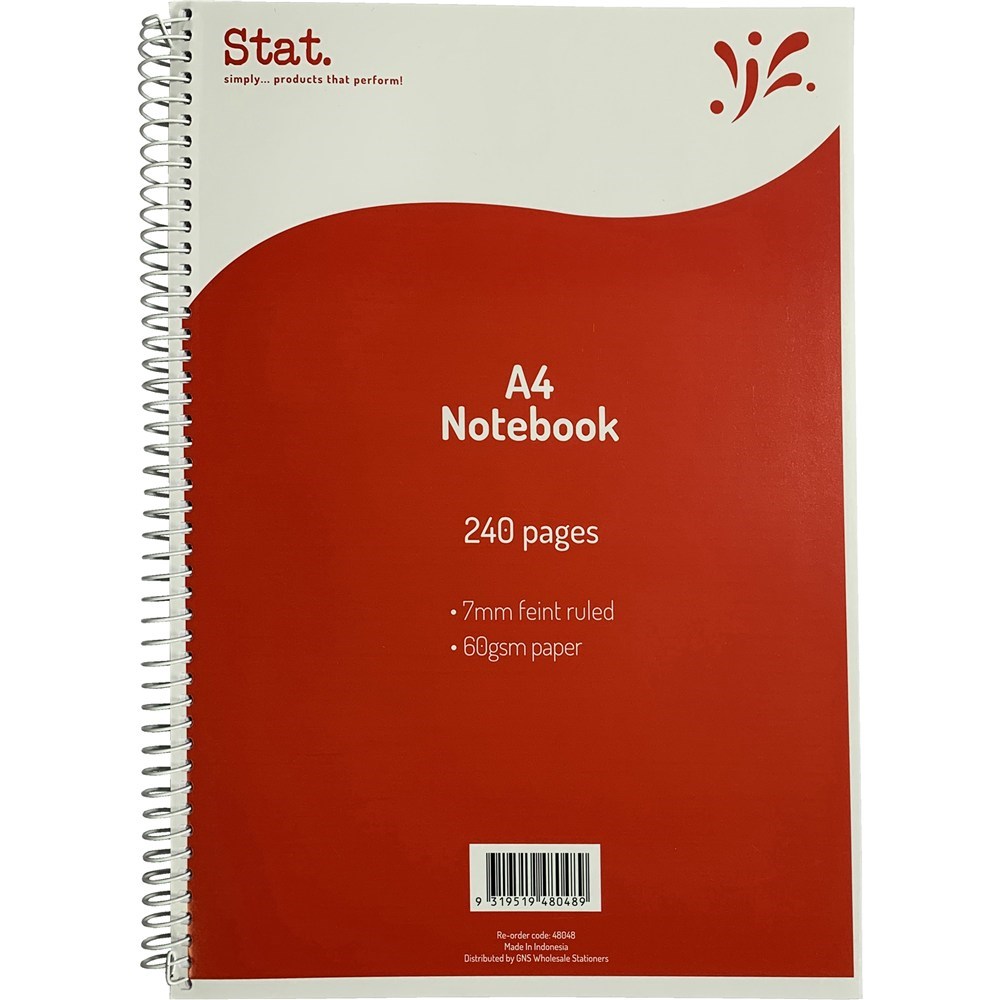 STAT NOTEBOOK A4 7MM RULED 60Gsm Red 240 Pages