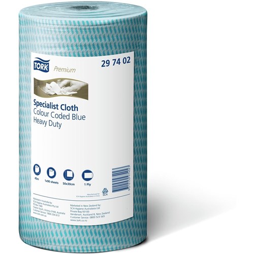 TORK SPECIALIST PREMIUM CLOTH 50cmX30cmX45m Heavy Duty Blue CTN OF 4 ROLLS