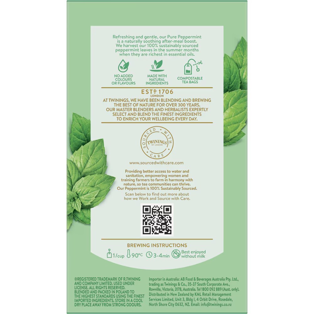 • Carefully selected the most aromatic leaves for our Pure Peppermint blend, to deliver a fresh and invigorating experience with every sip.
