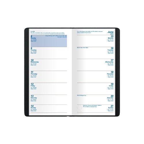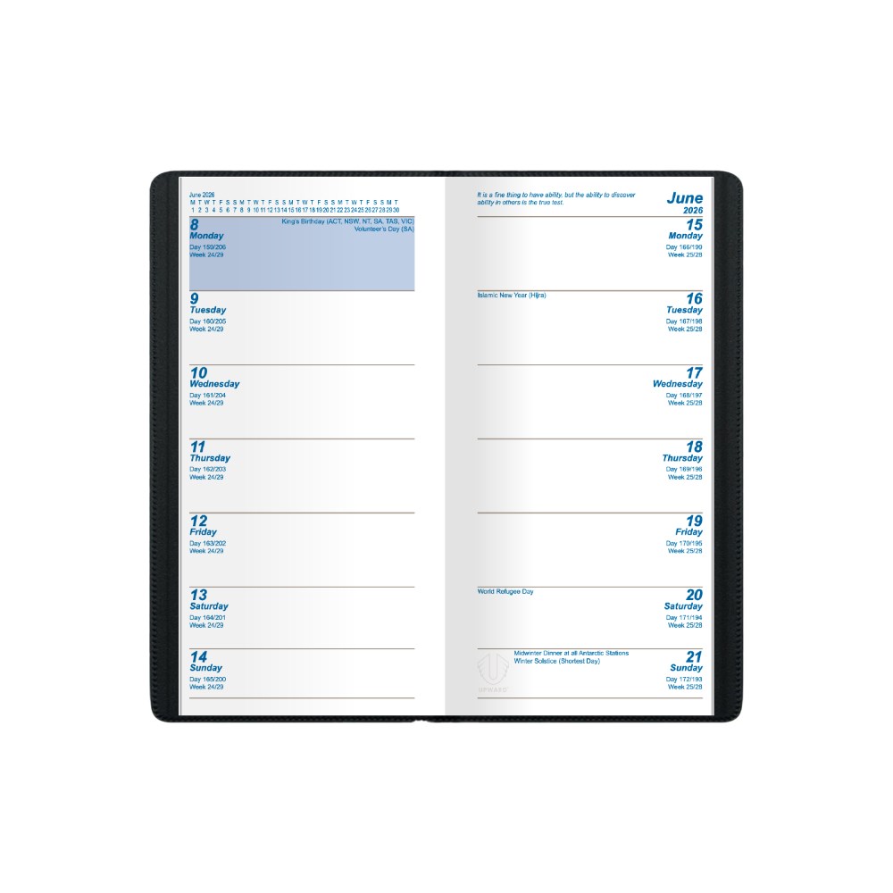 Upward Standard Pocket Diary 148 x 74mm 2 Weeks To View Black