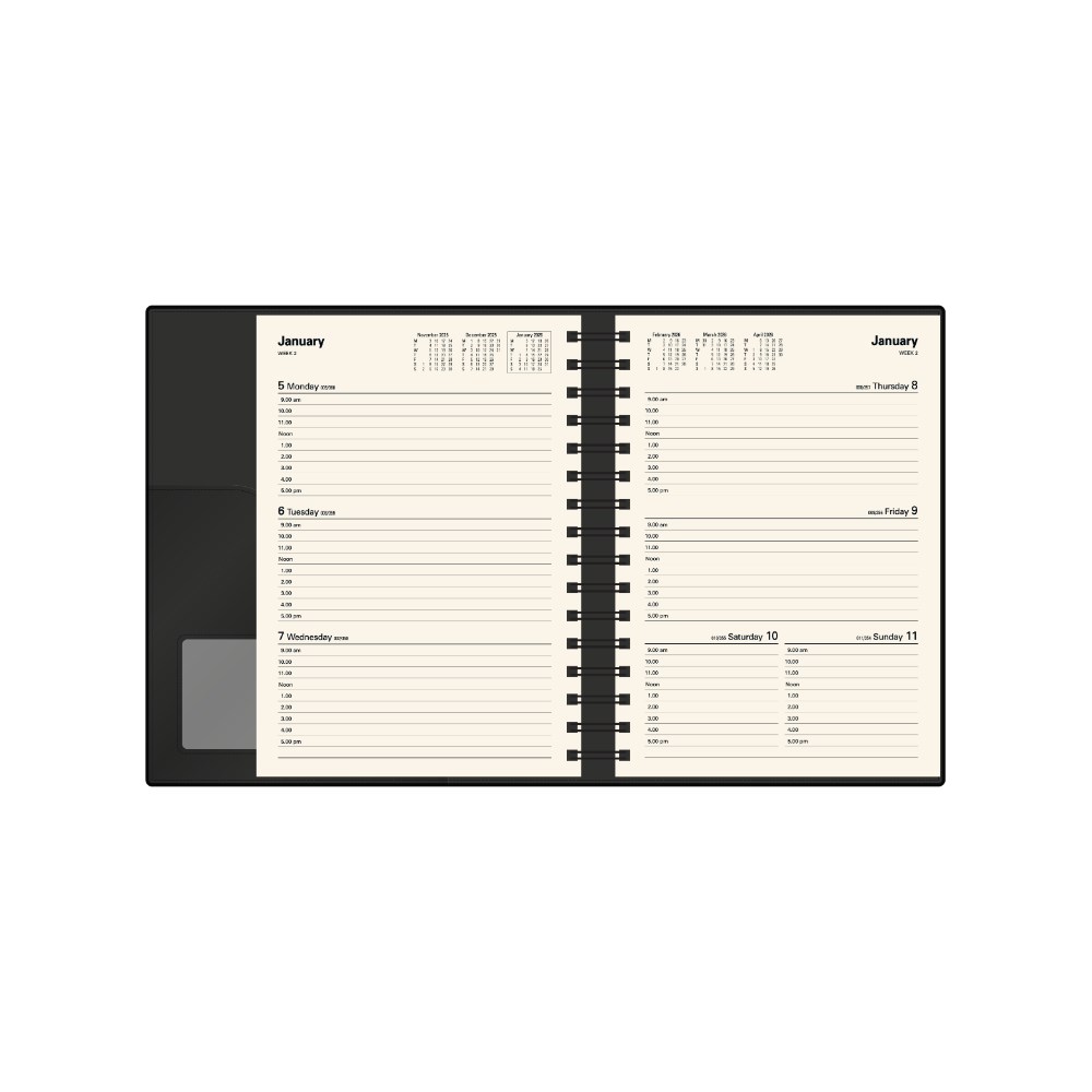 VANESSA A5 DIARY WEEK TO OPEN BLACK #385 SPIRAL WTV 2025