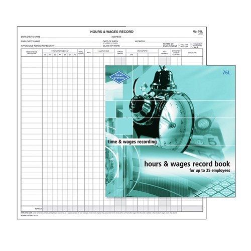 ZIONS HOURS & WAGES RECORD BOOK NO.76L 76L Up to 25 Employees 270x2