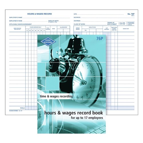 ZIONS HOURS & WAGES RECORD BOOK NO.76P 76P Up to 17 Employees 205x1